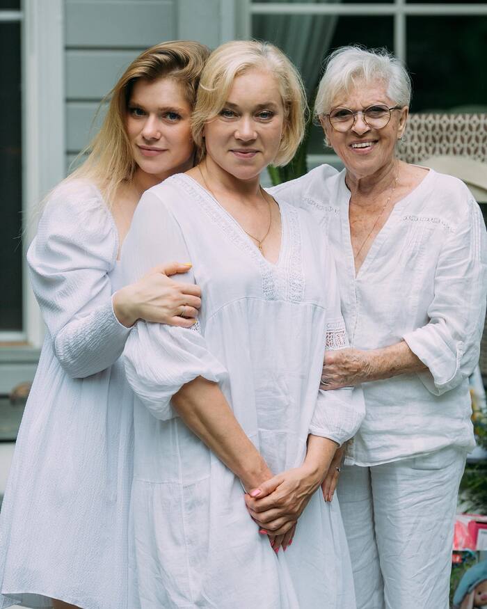 На новых кадрах 90-летняя Алиса Фрейндлих танцует с правнуками, кормит их с вилочки. “За этим столом 4 поколения”,- с гордостью говорит пережившая блокаду Ленинграда, Фрейндлих.