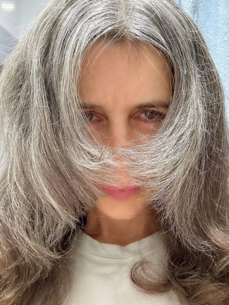 Женщина хвастается седыми волосами. Актриса как-то заявила, что поседела из-за переживаний, во время их общей борьбы за жизнь Филиппа.