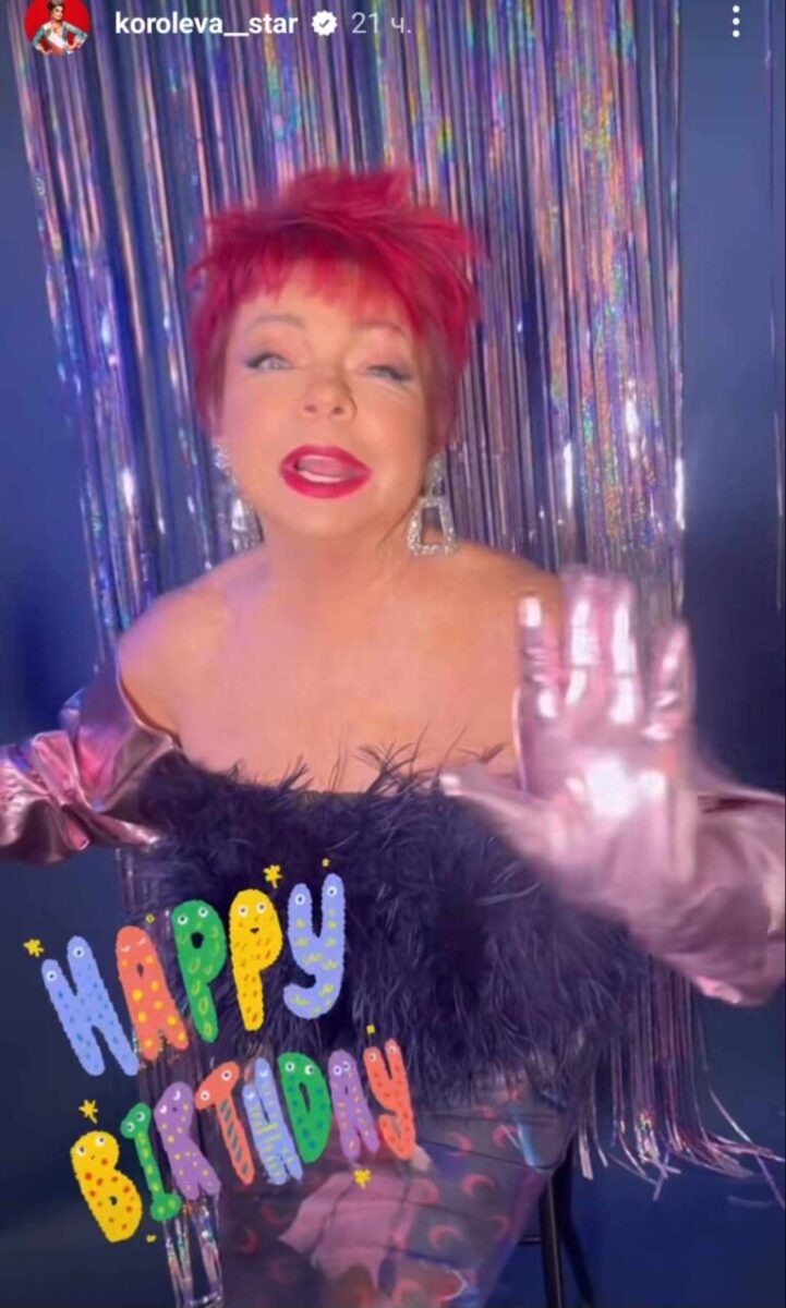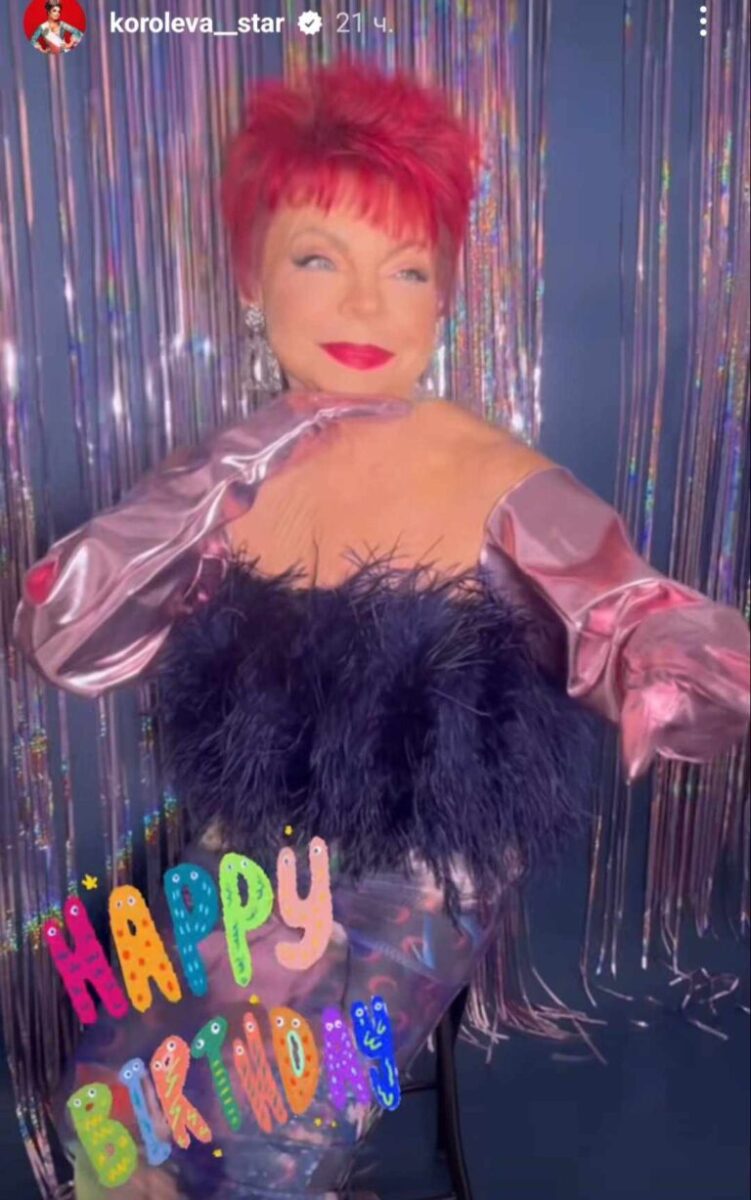 Наташа Королева поздравила маму с 79-летием, обнародовав новые кадры нестареющей мамы Люды. Женщина предстала перед поклонниками дочери в облегающем наряде и с топом из перьев. Людмила Порывай дополнила образ массивными украшениями и длинными перчатками.