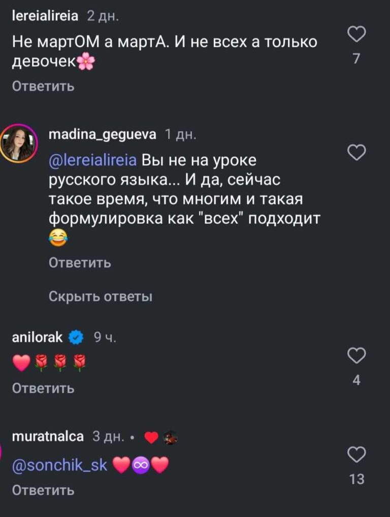 “Девочка в школу ходит?”, “Ани и сама не блещет знаниями”, “Прекрасная девочка, у нее еще все впереди”, “Не придирайтесь. Хороший ребенок”, “В маму пошла”, Лорак тоже не может похвастаться блестящими знаниями”, — не унимаются пользователи Сети.