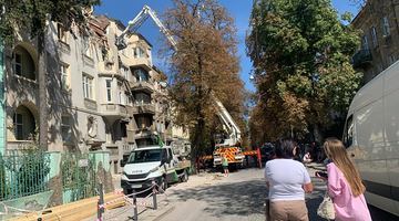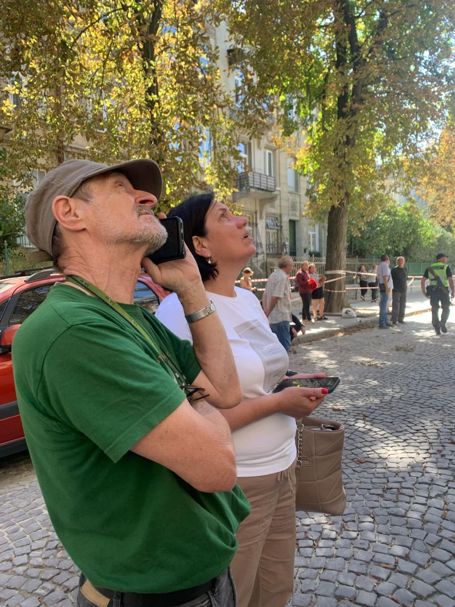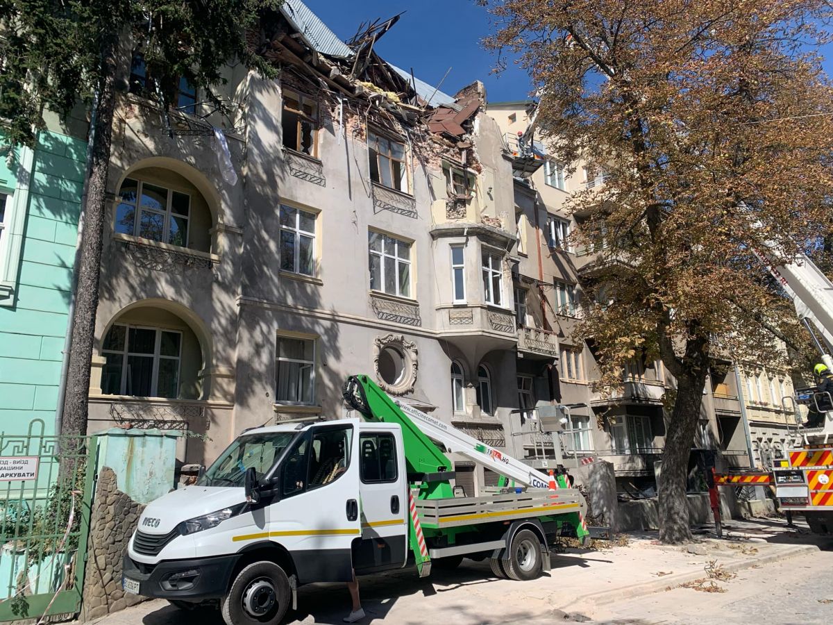 Кран з вишкою для порятунку речей з рознесених ракетами квартир організувала для мешканців управителька ОСББ «Байки» Олександра Слободян. «Тут тринадцять квартир. Люди вивозять, що можна, і перевозять туди, де зараз мешкають (переважно в родичів чи на орендованих квартирах. — Авт.). — каже моя співрозмовниця. — Цей кран ми організували насамперед для квартири останнього поверху Ярослава Базилевича. Він поліз краном нагору, аби забрати речі, які йому знадобляться на новому місці. Я звернулася до Франківської районної адміністрації, яка надала нам вишку безкоштовно. Закупили для людей каски, рукавиці. Це речі, які знадобляться у роботі у квартирі, поки забирають речі».