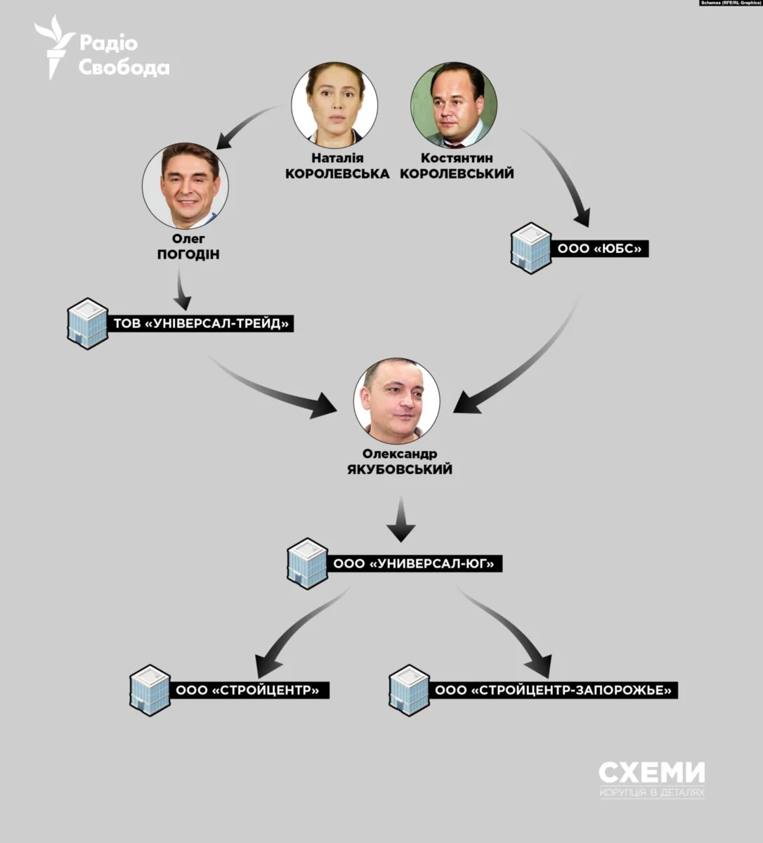 Він також володіє акціями компанії Стройцентр-Запоріжжя, що незаконно зареєстрована за адресою Епіцентру в захопленому Мелітополі.У 2022 році Якубовський разом із російськими окупантами намагалися захопити Епіцентр у Херсоні – військові країни-агресора утримували персонал у заручниках і стверджували, що торгівля триватиме під російським «керівництвом».За даними Схем, Якубовський разом із соратником Королевської Олегом Погодіним є співвласником української компанії Інтертрейд, а разом із рідним братом Королевської Костянтином — російської фірми ТОВ ЮБС, що зареєстрована в окупованому Криму.