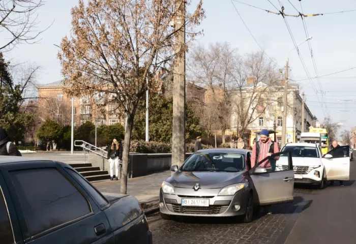Так сумно від цього всього мені стало. Я придивилась, а на дорогезному новенькому джипі жіночки видніються донецькі номера. Вочевидь, переселенка. Я думала, що конфлікт вщухне, але ні. Водійка таки зачепила іншу машину. З неї вийшов чоловік і емоцій не стримував.