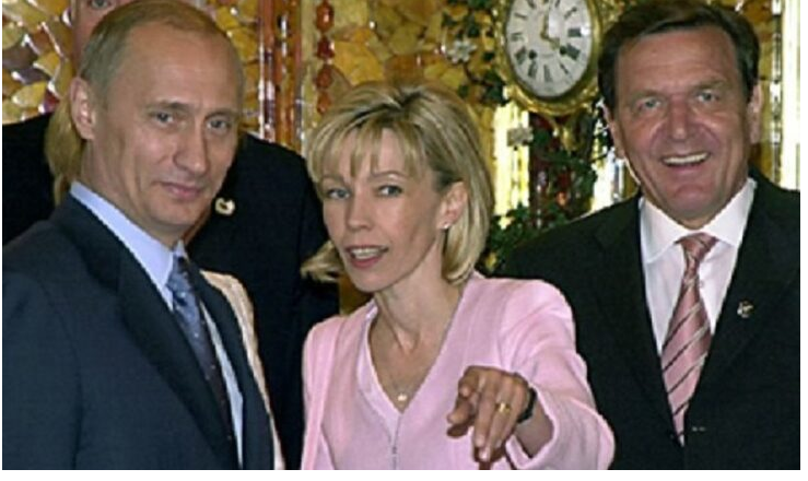 Подаємо мовою оригіналу: Сергій Чаплигін Стара світлина путіна та шредера. Між ними знаходиться тодішня четверта дружина канцлера Німеччини Доріс Кепф. Прожили разом 18 років. Оскільки не мали своїх дітей – всиновили на московщині. Доріс Кепф «цивільна дружина» сьогоднішнього міністра оборони Німеччини Бориса Пісторіуса. Саме від якого залежить рішення поставок важких озброєнь в Україну. Нагадаю, що Шредер став в 1998 році канцлером Німеччини з посади прем’єр-міністра землі Нижня Саксонія.