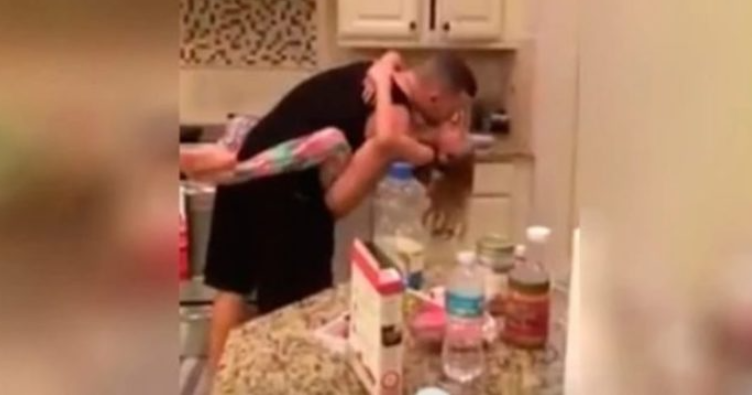 Пока мама занималась своими делами, муж с дочерью отправились на кухню, чтобы приготовить завтрак. Когда мама заметила, что их нет слишком долго, то решила заглянуть на кухню и проверить, всё ли там в порядке. Но она никак не ожидала увидеть такое. Отец с дочерью решили потанцевать прямо во время приготовления еды. Увидев такую картину, мама взяла телефон и незаметно сняла это забавное видео.