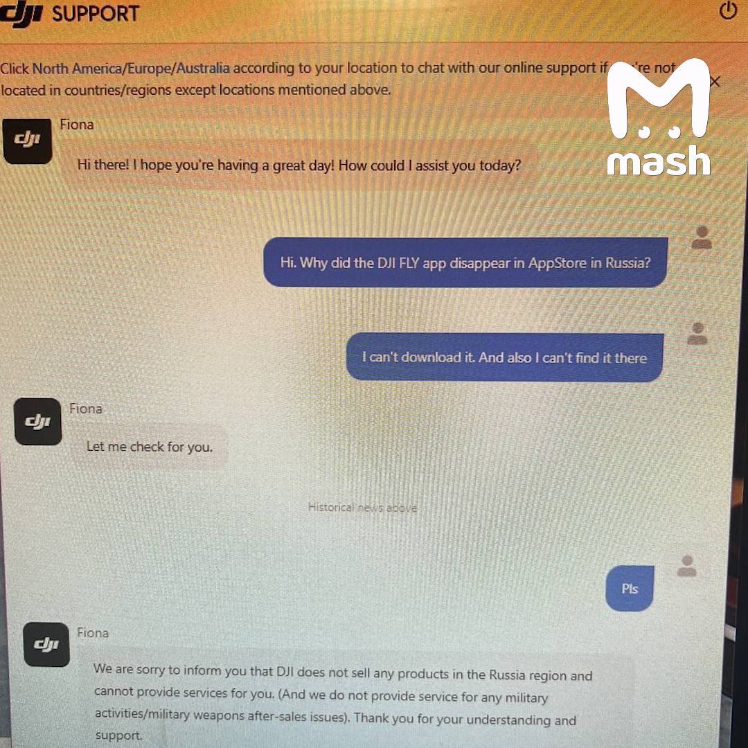 Тому тепер ситуація виглядає так: якщо ви встановили програму до блокування, то все буде ок. Але складніше придбати комплектуючі. Якщо не встигли — сміття. Андроїд качає апк, iOS – сумує. На всі скарги DJI відповідає: просимо вибачення, але ми не надаємо свої послуги росіянам + не надаємо послуги з якоїсь військової діяльності, тому спасибі за розуміння.