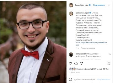 Зірка гумористичного шоу “Ліга сміху” Ігор Ласточкін, який зараз займається волонтерською діяльністю, поділився трагічною новиною. Зокрема, на своїй сторінці в соціальній мережі Інстаграм він повідомив сумну новину – на фронті загинув його друг і колега по сцені. Так, на фронті загинув український гуморист, актор та учасник “Ліги сміху” Роман Іваненко .
