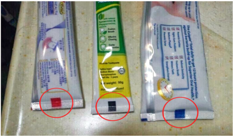 Красный квадратик на тюбике указывает на наличие небольшого количества опасных химикатов: такую пасту ни в коем случае нельзя глотать! Черный квадратик является самым опасным знаком. Вредные зубные пасты практически полностью состоят из химикатов иотмечены таким значком на тюбике! Такую маркировку производители используют уже очень давно! Особенно важно проверить детскую зубную пасту, ведь детки так часто глотают ее во время чистки зубов…