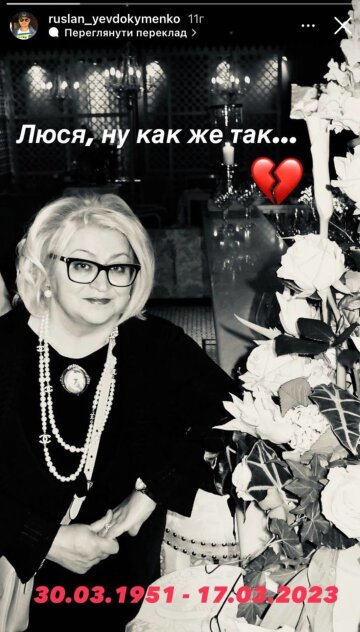 У родині легендарної української співачка Софія Ротару сталося горе, єдиний син артистки повідомив перші подробиці. У сторіс на своїй сторінці в Instagram Руслан Євдокименко повідомив, що 17 березня з життя пішла його теща Людмила Дмитрівна. “Люся, ну як же так… 30.03.1951 – 17.03.2023”, — написав він під чорно-білою світлиною матері своєї дружини. Син Софії Ротару не став розкривати причину смерті тещі. Вона трохи не дожила до свого 72-річчя.