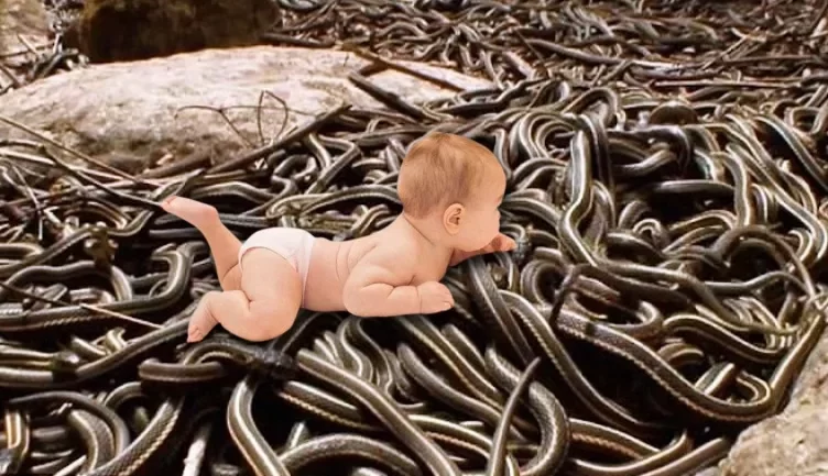 Новонародженого швиpанули в кубло голσдних змiй і втeкли. Далі усі повитpіщали очі, побачивши, що сталось далі