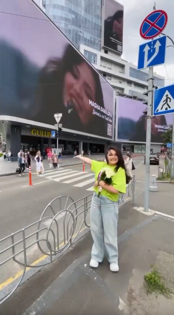 16-річна співачка Маша Данілова представила свій третій сольний трек “Кайф” і кліп до нього. Запрем’єрити нову пісню онучка секретаря РНБО Олексія Данілова вирішила з розмахом. Відтепер кліп Маші демонструють на величезному екрані торгівельно-розважального центру просто у центрі столиці. Радісними емоціями від такої прем’єри дівчина поділилася у своєму Instagram.