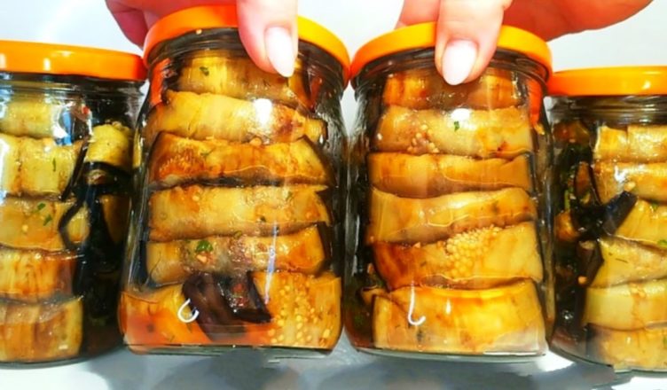 Перекладываем рулеты и баклажанов в банки по 0,5 литров, плотно утрамбовываем.