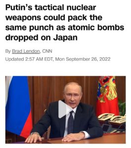 CNN публикует справку о российском ядерном оружии тактического назначения. По данным Федерации американских ученых , всего у России 4477 развернутых и резервных ядерных боеголовок. Около 1900 из них являются «нестратегическими» — также известными как тактическое ядерное оружие. Тактические боеголовки предназначены для использования на ограниченном поле боя, например, для уничтожения колонны танков или боевой группы авианосца.