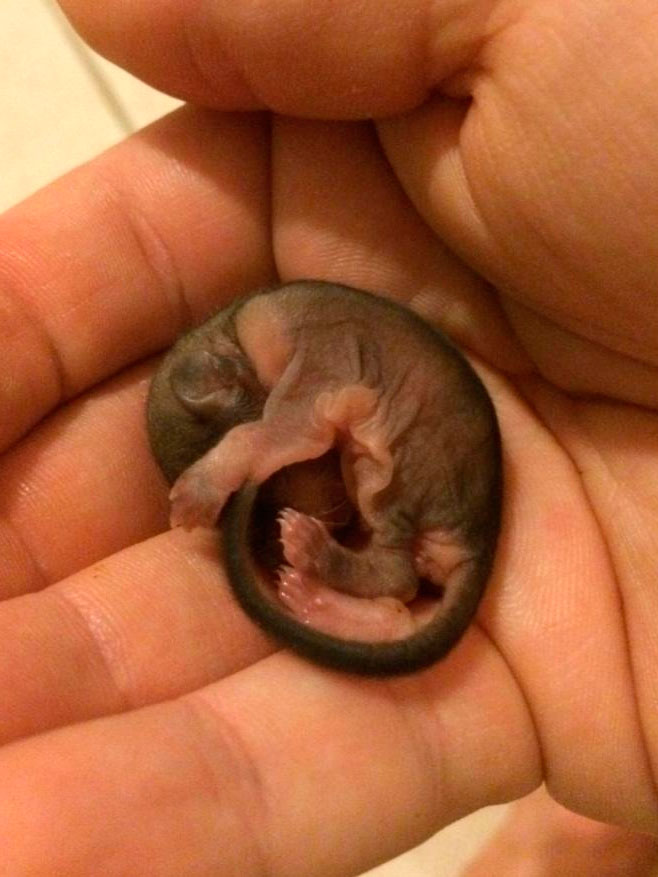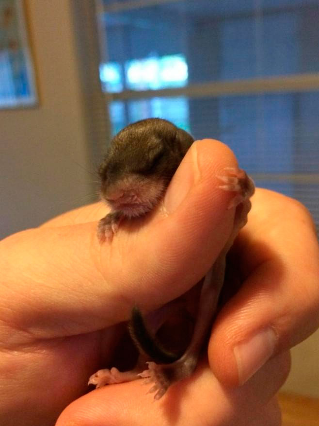 Малыш лежал, свернувшись клубком и едва дышал. Когда парень взял зверька, то оказалось, что он совсем крохотный — меньше указательного пальца.