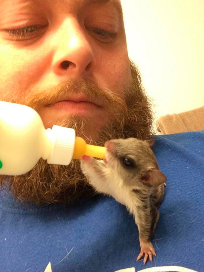 Первые три месяца малышка жила в нагрудном кармане Джеффри. Затем она начала выбираться и исследовать окружающий мир.