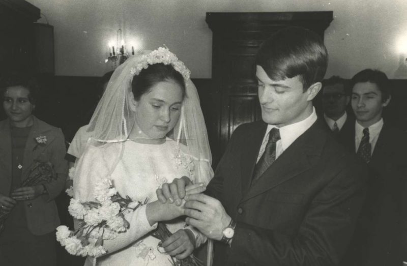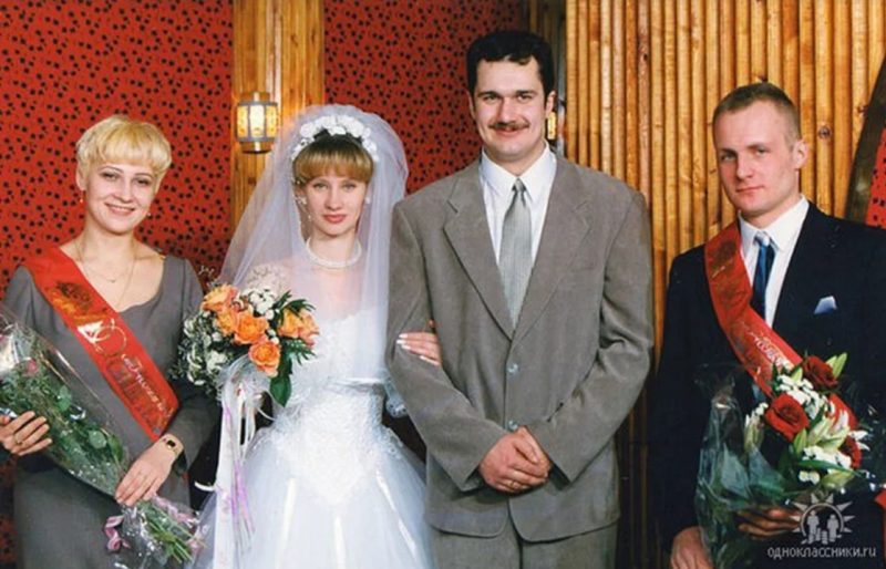 В СССР был острый дефицит товаров. Когда пара писала заявление в ЗАГС, то они получали специальный талон. Он давал возможность купить свадебное платье и костюм для жениха, а еще купить дефицитные товары, например джинсы.