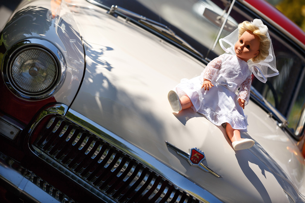 Самым важным атрибутом на свадьбе была кукла-невеста на бампере свадебного автомобиля.