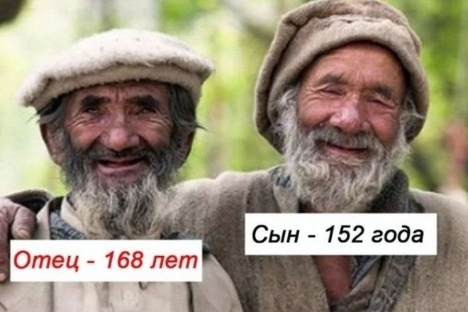 Хунзы купаются в ледяной воде даже при 15-градусном морозе, до ста лет играют в подвижные игры, 40-летние женщины у них выглядят как девушки, в 60 лет сохраняют стройность и изящество фигуры, а в 65 лет еще рожают детей. Летом они питаются сырыми фруктами и овощами, зимой — высушенными на солнце абрикосами и пророщенными зернами, овечьей брынзой.