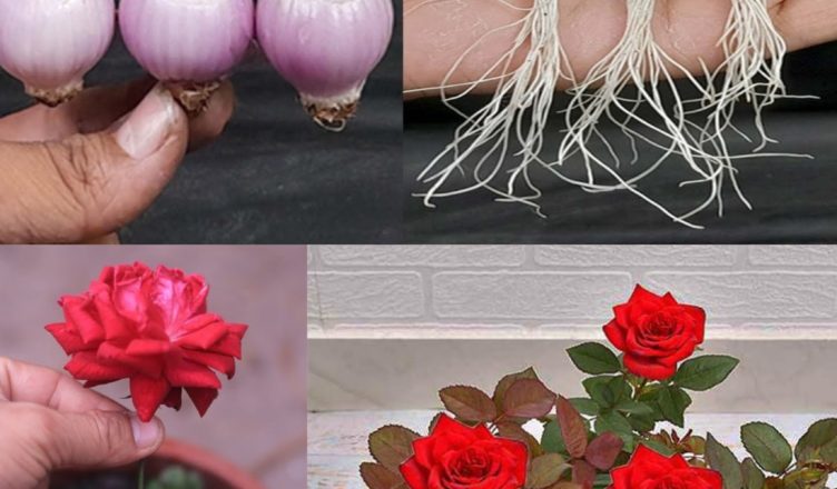 Поместите розу с луком в емкость с большим количеством дренажных отверстий и рыхлой почвой. Обильно полейте посадку водой.