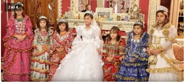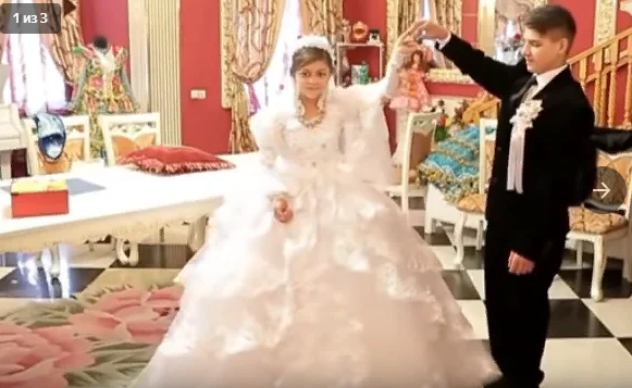 Свадьба проходит в дорогом банкетном зале, где столы ломятся от угощений и играет громкая, веселая музыка. Что касается самих молодых , они еще совсем юны для брака, но им пришлось отдать дань традициям.