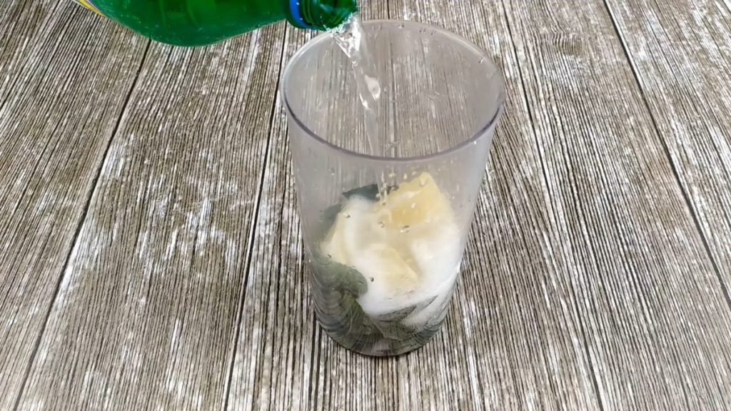 Собираем листья с 5-8 веточек мяты — их количество зависит от ваших предпочтений. Большую часть листьев кладем в чашу блендера, добавляем очищенный лимон и немного спрайта.Смешиваем все блендером до получения однородной массы.