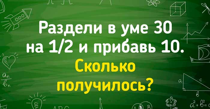 Правильный ответ — семьдесят. Еще во втором классе дети помнят, что дроби при делении переворачивают, то есть, 30 нужно было умножить на знаменатель 2, а потом прибавить десятку.