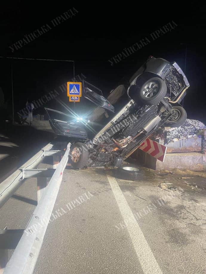 За даними джерел, авто Toyota Land Cruiser Prado з номерним знаком КА3573МС, здійснило наїзд на бетонну перешкоду.