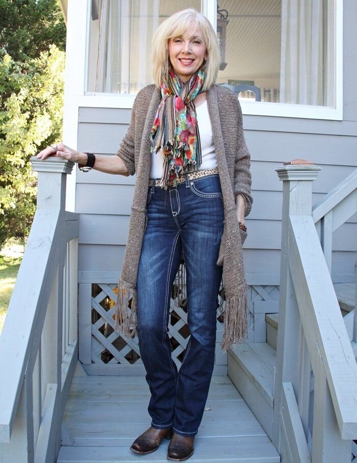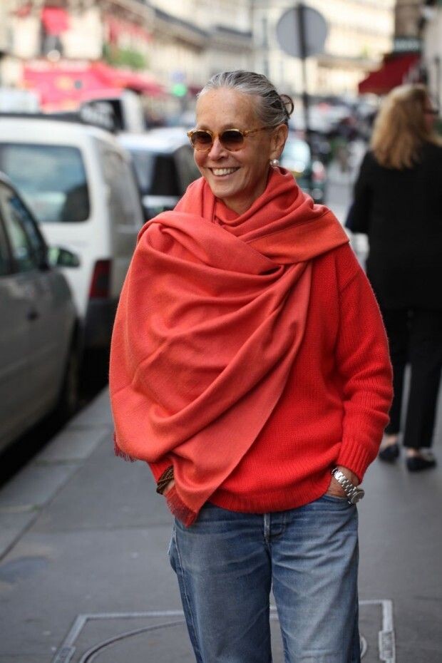 С возрастом каждая женщина имеет право выглядеть так, как ей нравится, а не следовать стереотипам и ожиданиям окружающих. В «серебряном» возрасте (60+) стиль может оставаться элегантным, современным и при этом удобным. Осенние образы для женщин старше 60 лет могут быть гармоничными и выразительными, если правильно подобрать детали.1. Джинсы и коралловый свитер — современный и удобный образ