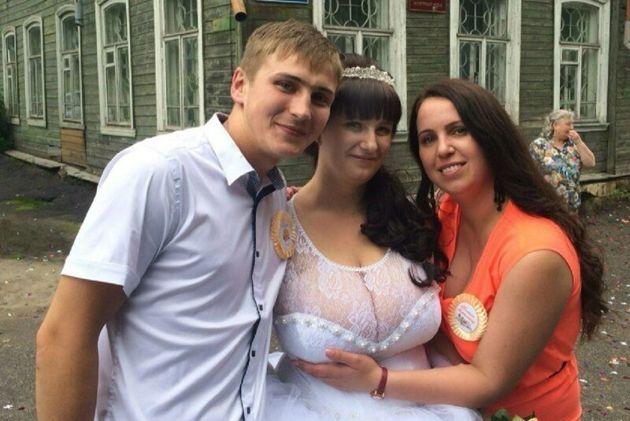 Деревенские свадьбы давно стали посмешищем в интернете. Фотографии с таких свадеб обирают уйму просмотров, а комментаторы изощряются в шутках, соревнуясь друг с другом. Интересно, что в США свадьба в «деревенском» стиле это что-то уникальные, интересное и вызывающее зависть. У нас же, люде стремятся сыграть свадьбу в городе, максимально цивилизованно, и именно потому что деревенская свадьба у нас ассоциируется с чем-то позорным и смешным.Но справедливости ради стоит отметить, что дело далеко не в месте, а в самих людях. И в деревне возможно сыграть прекрасную, веселую и незабываемую свадьбу. Но в этой статье речь пойдет не просто о деревенских свадьбах, а конкретно о нарядах невесты. Наряды всегда очень своеобразные и порой даже вызывающие. 1) Такое богатство никаким платьем не прикроешь. Да и зачем? Пусть все завидуют.