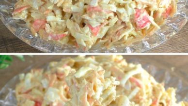 Позвольте представить вам рецепт восхитительного салата, который станет отличным дополнением к вашему ежедневному меню. Этот салат объединяет в себе простоту приготовления и элегантный вкус, что делает его идеальным выбором для тех, кто хочет быстро приготовить что-то особенное, не обладая при этом профессиональными кулинарными навыками. Этот салат поразит вас невероятной сочностью и гармоничным сочетанием ингредиентов. Давайте начнём! Инструкция: Нам понадобятся следующие ингредиенты: крабовые палочки, пара сваренных вкрутую яиц, плавленный сыр (можно использовать любой по вашему выбору, например, «Дружба»), майонез домашнего приготовления и морковь по-корейски. Начинаем с того, что рвём крабовые палочки на мелкие нити — можно воспользоваться вилкой или руками. Перекладываем их в глубокую миску. Продолжаем кулинарный процесс, измельчая на тёрке отваренные яйца и сыр типа «плавленый». Чтобы облегчить процесс терки сыра, рекомендуется предварительно поместить его в холодильную камеру. В этом рецепте мы вносим свежий витаминный акцент, добавляя красочную корейскую морковь в салат. Этот ингредиент вносит яркость в палитру вкусов, создавая гармоничное сочетание с остальными компонентами. Затем, все ингредиенты аккуратно соединяем с нежным майонезом, обеспечивая их равномерное распределение. При необходимости, можно слегка отрегулировать вкус, добавив щепотку соли. Благодаря этим шагам, салат приобретает цельный и сбалансированный вкус, готовясь к торжественному подаче на стол. Салат оказывается не только питательным, но и ароматным, благодаря особой текстуре каждого ингредиента, которые вместе создают впечатляющий симфонический аккорд. Ключевым элементом здесь выступает корейская морковь, которая придает блюду его уникальный и незабываемый аромат.