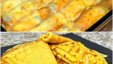 У них есть один серьезный недостаток, сразу предупреждаю. Если вы привыкли к таким блинчикам, других просто не захотите, до такой степени они нежные, гладенькие, растекаются на языке нежнейшим манящим вкусом. Они просто не могут не понравиться. Для приготовления в миске незатейливо смешивают с молоком сахар с солью, прибавляют ваниль и яйца. Тщательно поработав венчиком, подсыпают муку и снова мешают, чтоб ни комочка не осталось. Теперь эту густую массу разводят маслом и сливками. Дают тесту настояться, пока мука не разбухнет. Затем жарят тоненькие блинчики на масле. Для начинки мешают творог с ванилью, изюмом и яйцом. Каждый блинчик делят на половинки и в каждую рулетиком завертывают начинку. Эти маленькие блины укладывают в форму для выпечки. Для заливки сахар со сливками смешивают с яйцами и выливают на блины. Пекут час под фольгой при 180С, за десять минут фольгу убирают, пусть корочка будет вкуснейшей!